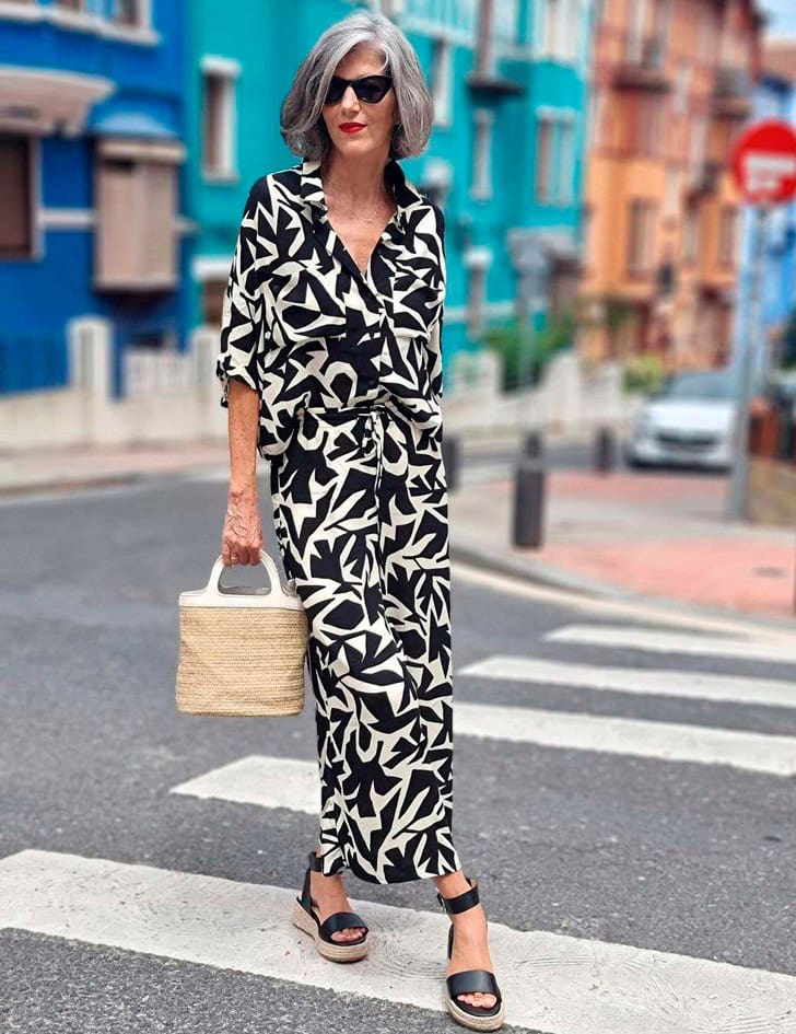 Платье-рубашка — одна из тех универсальных вещей, которая нас спасает в летнюю жару. Для неформального ужина в ресторане наденьте его с эспадрильями на танкетке, как у Кармен Гимено.