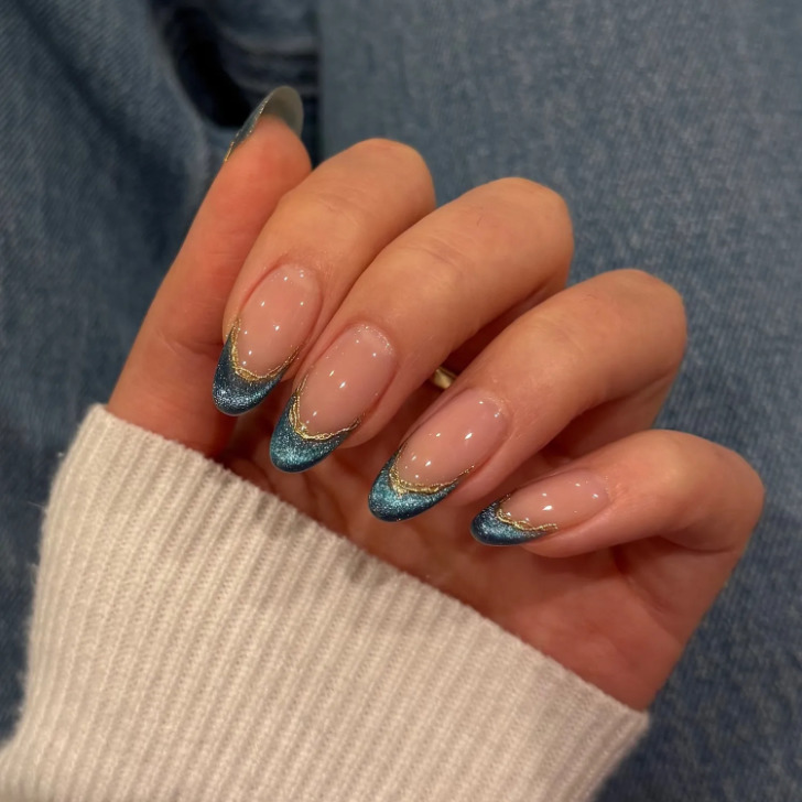 5. Очень богато и празднично смотрится френч с золотым блеском