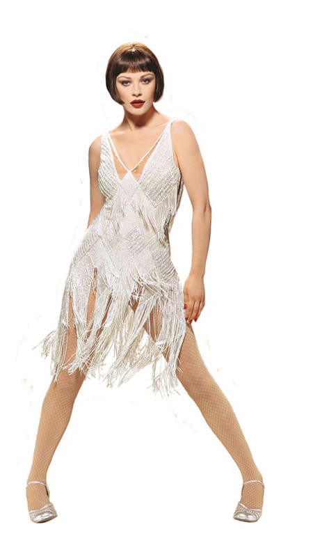 Одной из главных особенностей стиля Чикаго тех лет можно обозначить платья с заниженной талией, которая располагалась на том уровне, где мы привыкли видеть пояс джинсов с низкой посадкой. Выполнялись эти платья преимущественно из шёлка, атласа, бархата и шифона. А длина их была довольно короткой — до колена или чуть ниже. Взгляните: